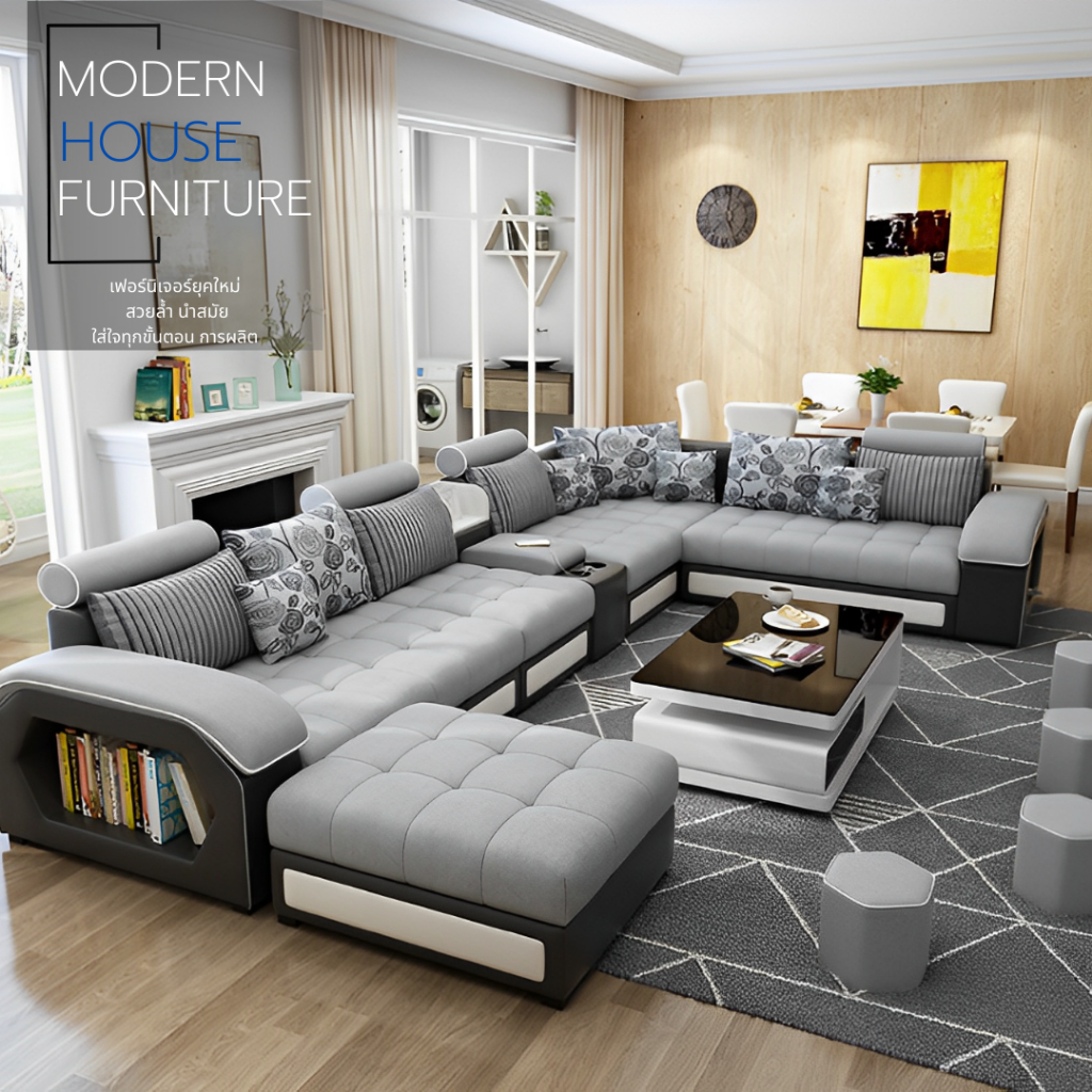 โซฟาครบชุดขนาดใหญ่ ดีไซน์ U-Shape รุ่น Vecna