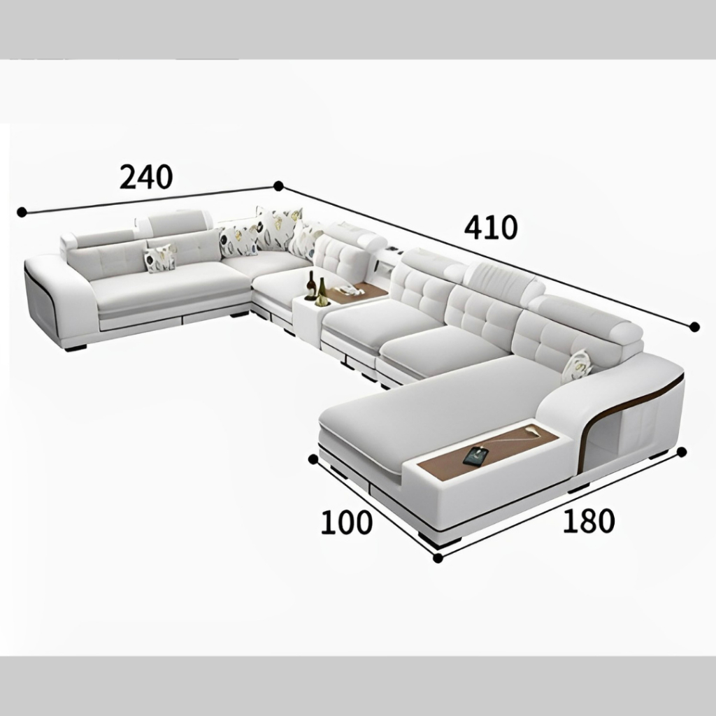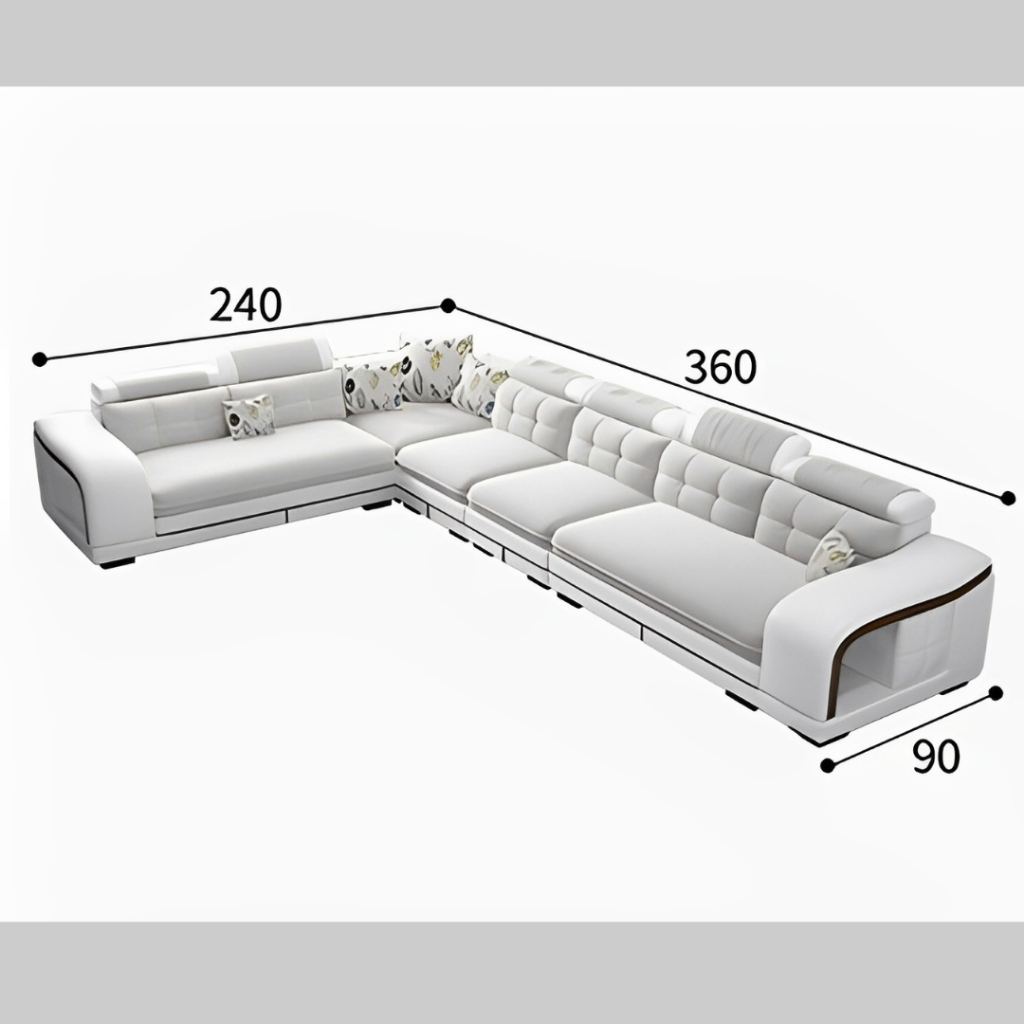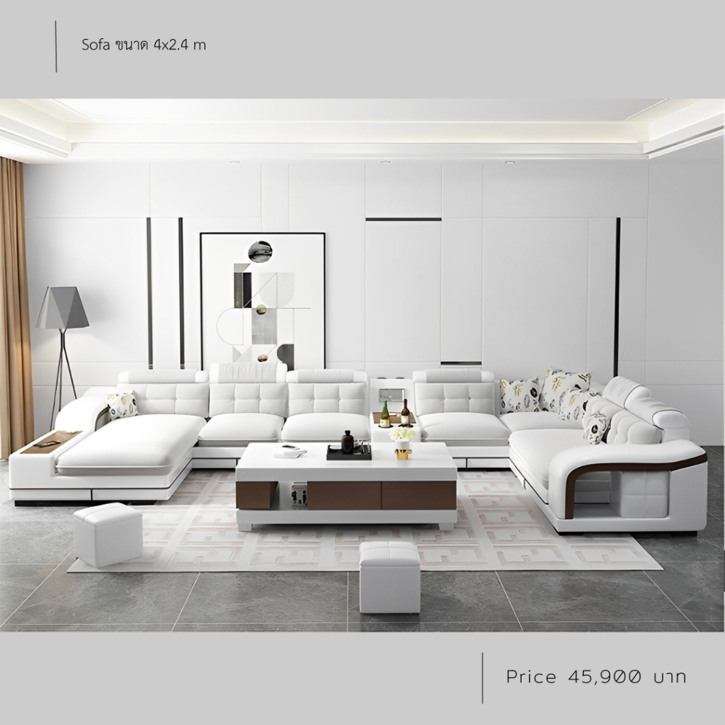 ขนาด W400 x L240 x H85 ซม. โซฟาขนาดใหญ่สไตล์โมเดิร์น สามารถเลือกเป็นโซฟาหนังหรือโซฟาผ้าได้ รองรับการอัปเกรดและปรับดีไซน์เพิ่มเติม เหมาะสำหรับห้องนั่งเล่น ห้องรับแขก และบ้านที่ต้องการความหรูหราแบบครบฟังก์ชัน (Luxury Sofa, Modern Sofa, Leather Sofa Set)